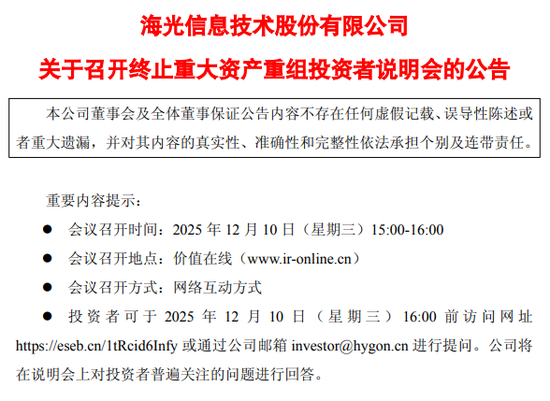 12月10日,海光信息召开终止重大资产重组投资者说明会,对投资者关注的多个问题,答疑解惑。